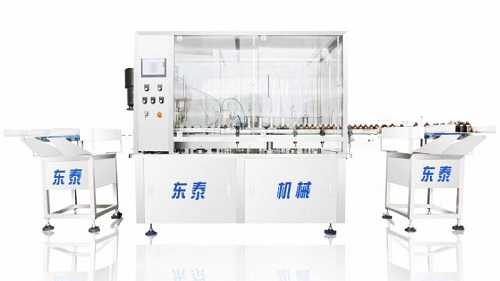 4、美容口服液灌裝機機器必須保持清潔,嚴禁機器上有油污、藥液或玻璃碎屑,以免造成機器損蝕
