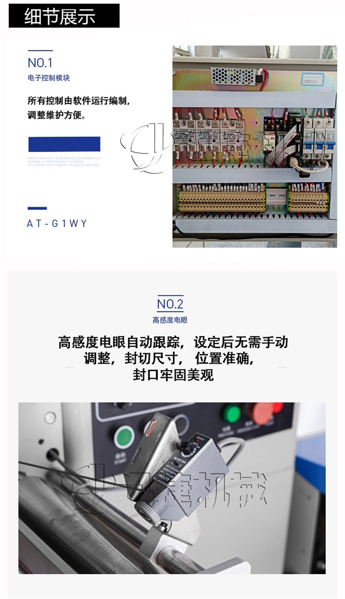 C、微電腦包裝控制器,優(yōu)良的人機對話模式,使速度、袋長、切點位置檢測等都可在界面上直接顯示。